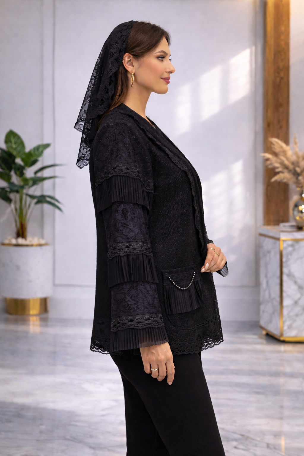 کت مخمل آستین تور