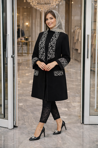 مانتو ژاکارد بلند مرواریدی