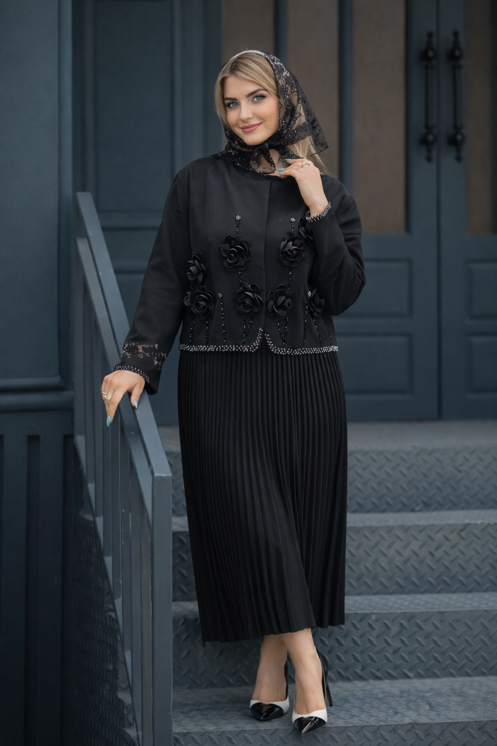 مانتو ژاکارد بلند مرواریدی